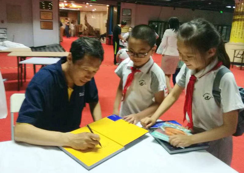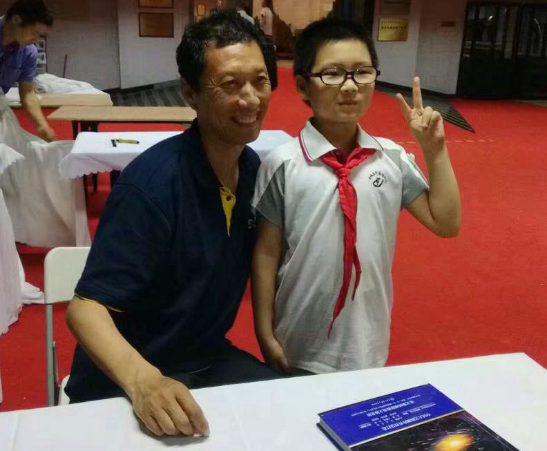 讲座结束后,同学们争先恐后地请朱馆长为自己手中的天文图书签名,并与朱馆长合影留念,久久不愿离去,天文讲座作为科技周的主场活动,在欢快而热烈的气氛中结束了,腾讯网全程直播了整个讲座互动的过程。